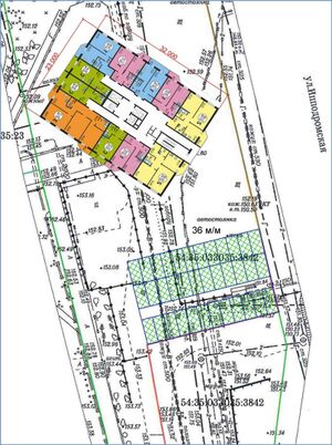 На участке возможно размещение 25-ти этажного здания с габаритами 23,0х32,0 м.
