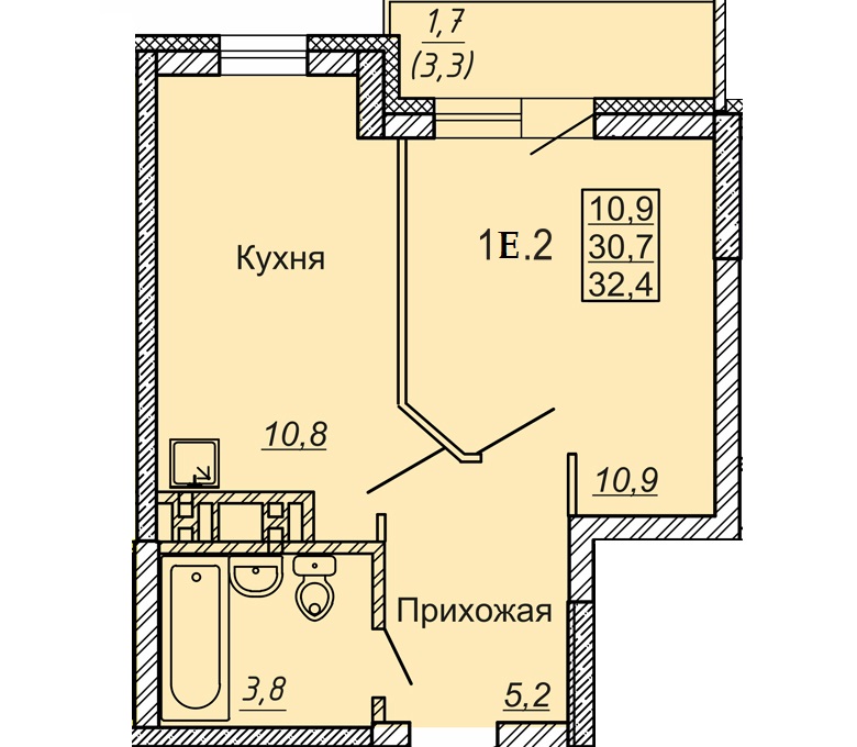 - 1 комн. 32,10 м² блок секция 3 в ЖК Новые Матрешки 1Е.2
