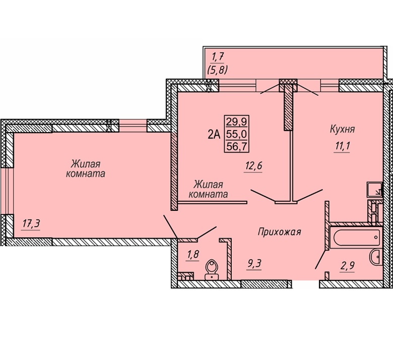 Файл:2 комн. 55,30 м² блок секция 2 в ЖК Новые Матрешки.jpg
