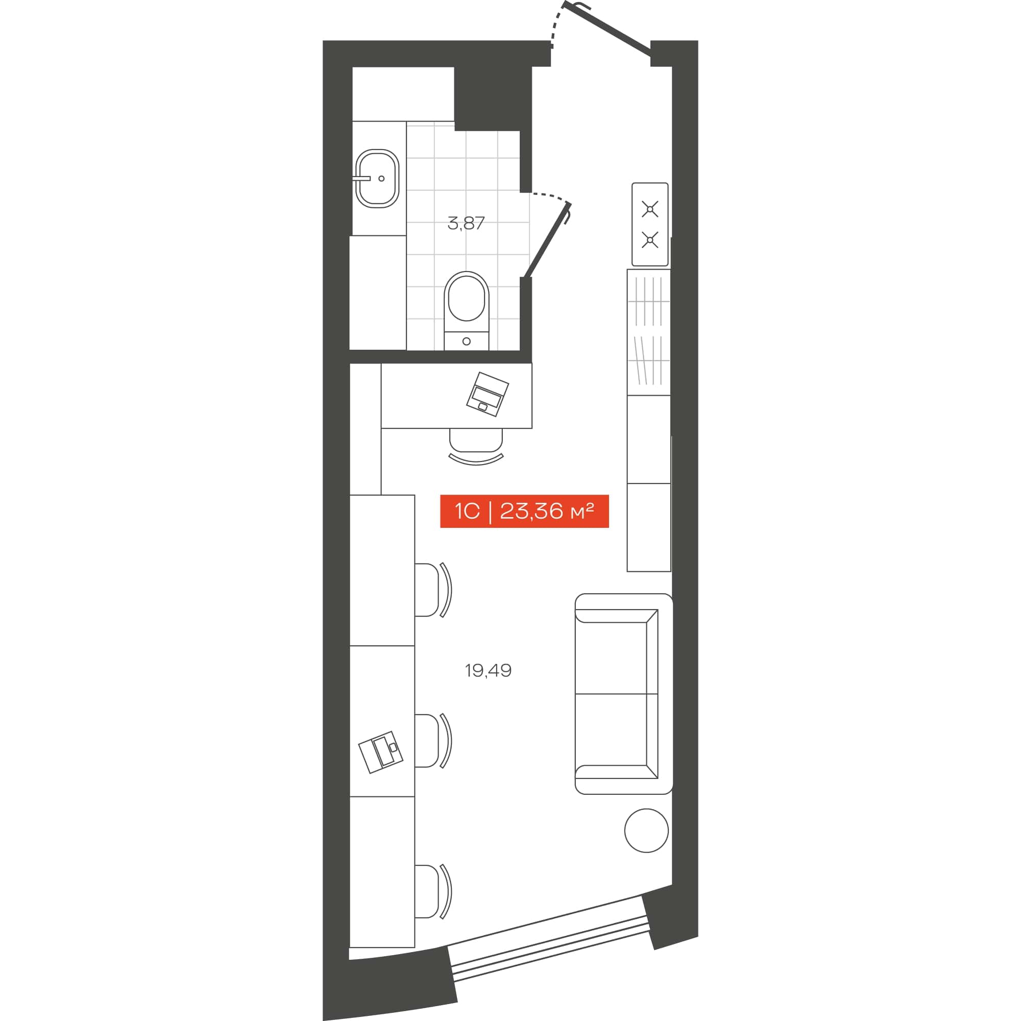 Файл:Freedom башня В 1-комнатные апартаменты 23.36 м².jpg