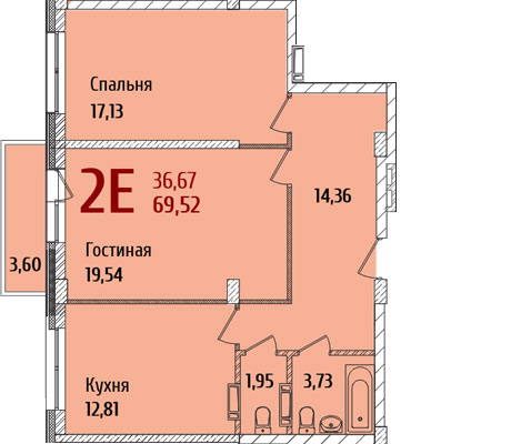 Redfox дом №3 двухкомнатная квартира 69,52